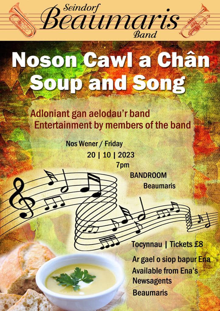 Come and enjoy Noson Cawl a Chân – an informal evening entertainment of Soup, Song and Music provided by members of the band and friends!