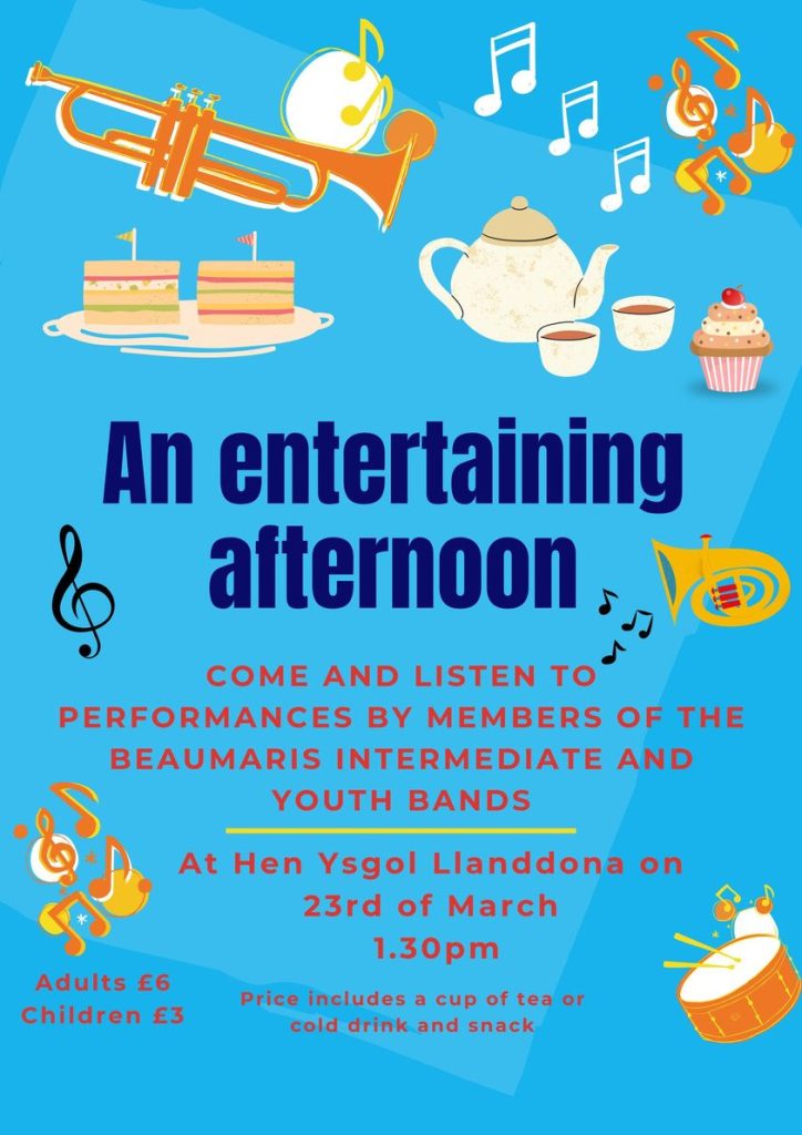 The Youth Band is working hard on their pieces for the competition and would love to have your support as they gain experience performing before a live audience. Next month they will also be giving an evening concert in Llangoed.
